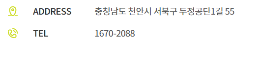 본사주소 : 충남 천안시 서북구 직산읍 직산로 136 충남테크노파크 종합지원관 3210호